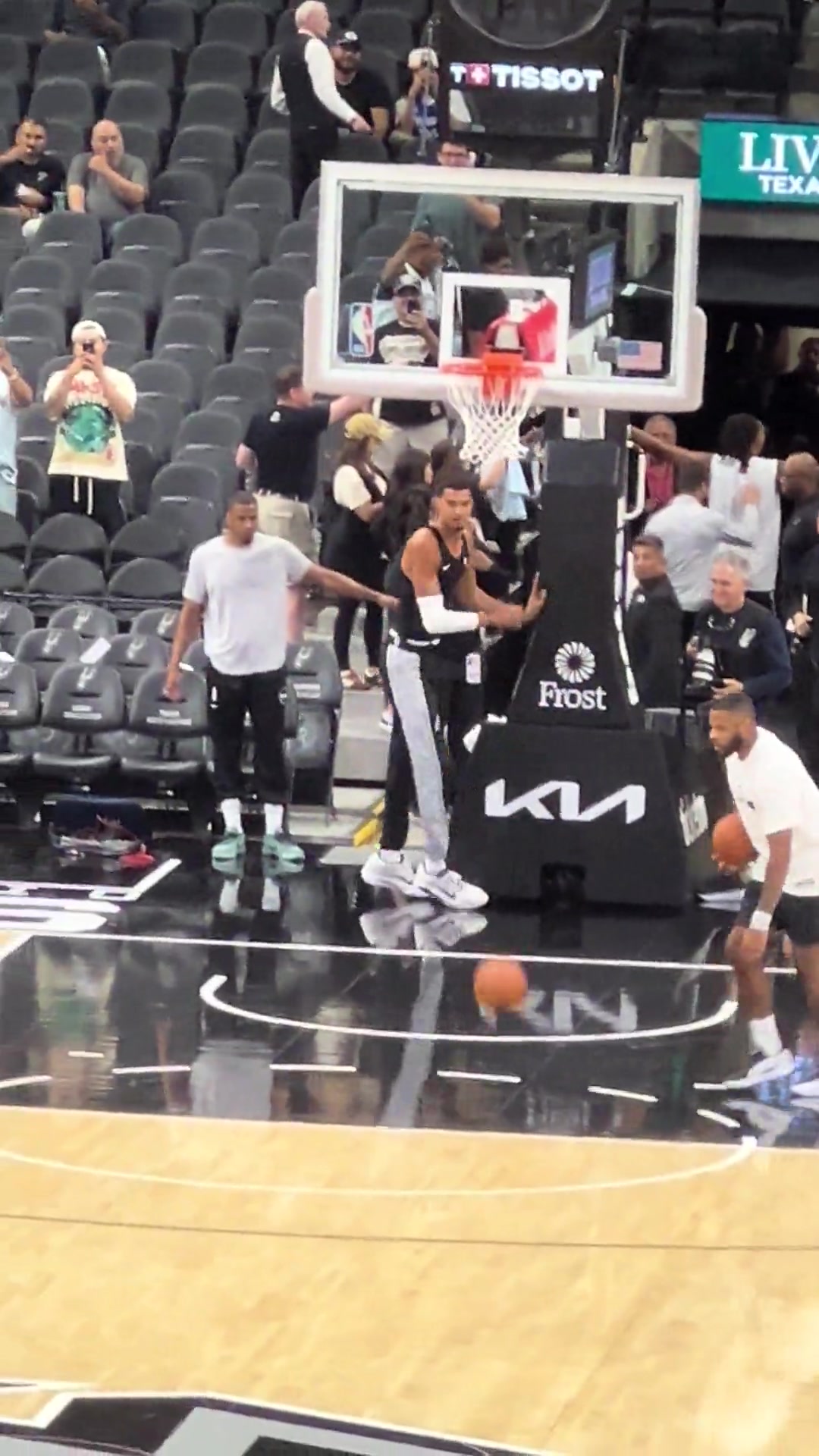 太轻松了吧文班赛前表演胯下换手风车